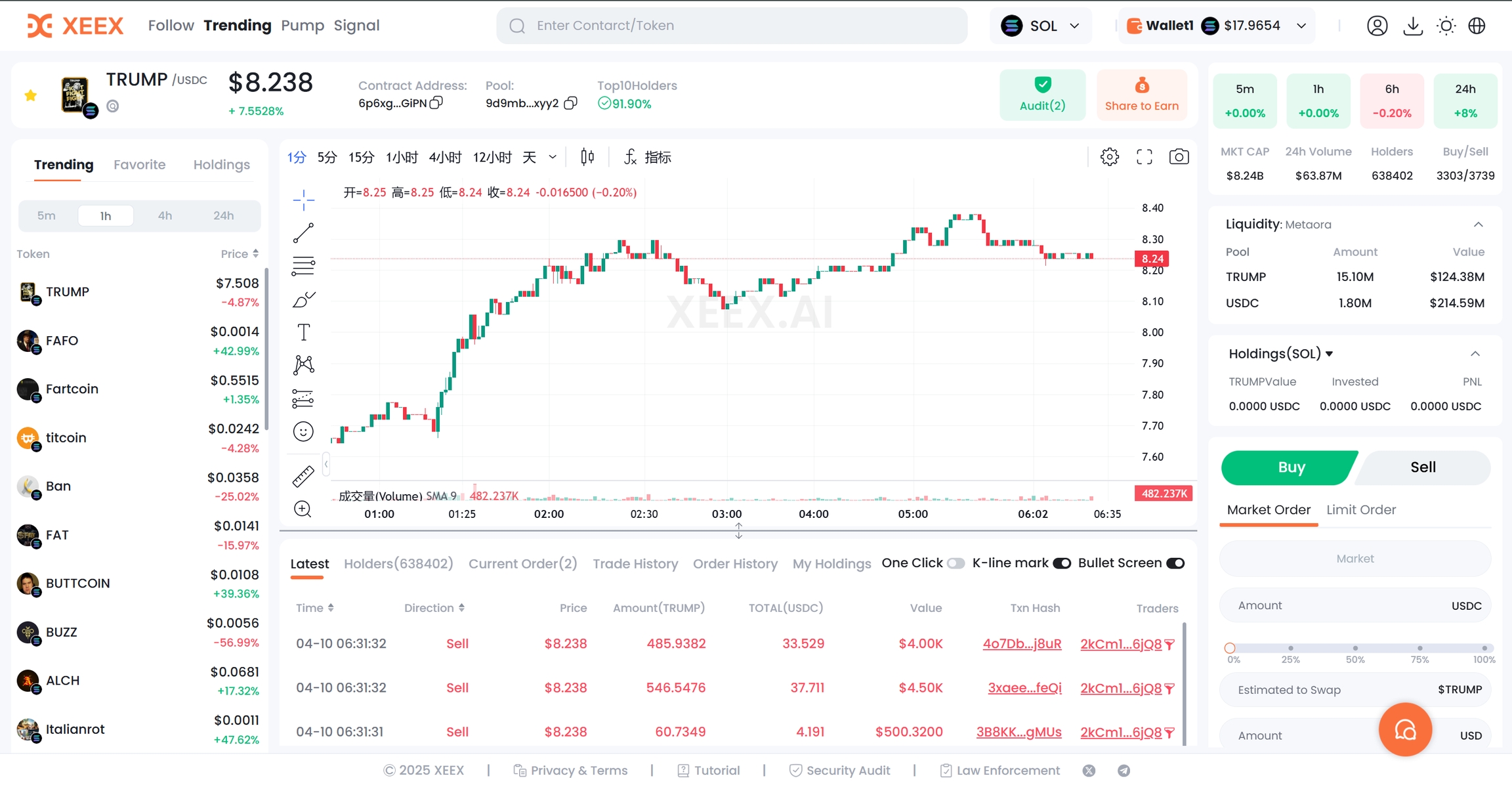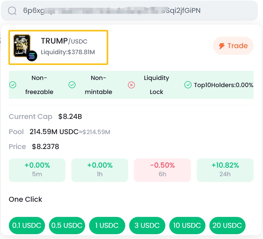 There are many meme coins with the same name. If you accidentally buy a copycat, your capital will be wasted. The token smart address (Contract Address) is the best way to accurately search for the meme coin you are interested in. It is similar to the ID card of the meme coin. The token address is similar to a string of letters like "GBLMV*****pump". Paste this code in the XEEX search box to find the corresponding token. As shown in the figure below: